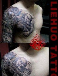 半甲纹身图片:千里眼顺风耳半甲纹身图案