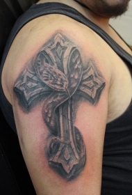 大臂石头十字架和蛇纹身图案