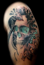 大臂发绿光的骷髅纹身图案