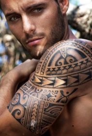 男子大臂波利尼西亚图腾纹身图案