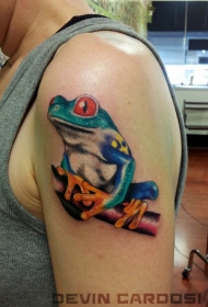大臂可爱的写实青蛙纹身图案