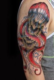 手臂非常逼真的彩色水母纹身图案