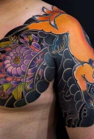 亚洲风格丰富多彩的狐狸菊花半甲纹身图案
