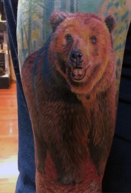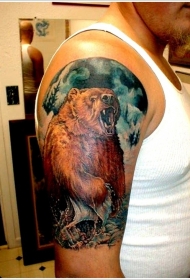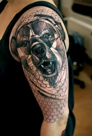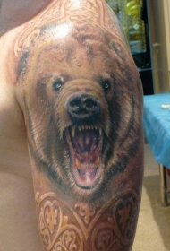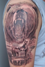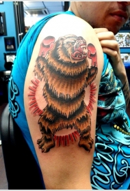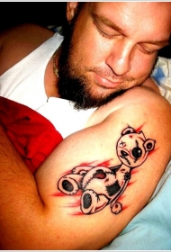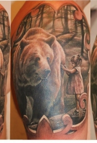手臂3D花纹轮廓和小女孩熊纹身图案