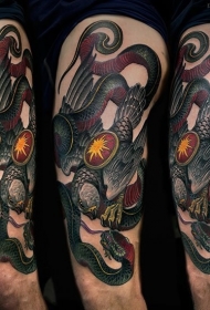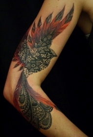 手臂令人敬畏的彩色图腾鸟纹身图案