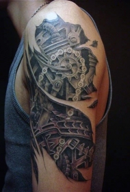 手臂令人印象深刻的逼真撕皮机械纹身图案