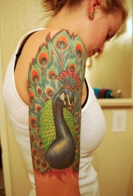 彩色孔雀鸟大臂纹身图案