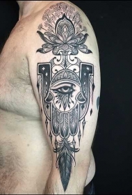 手臂黑色法蒂玛之手和羽毛花朵纹身图案
