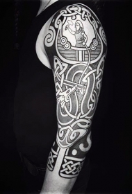 大臂凯尔特风格黑色各种结和龙纹身图案
