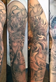 手臂黑灰风格的各种野生动物纹身图案