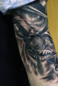 手臂插画风格黑色二战战斗机纹身图案