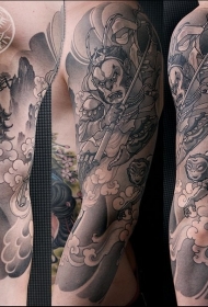 手臂黑色斗战胜佛与寺庙纹身图案