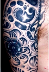 大臂机械组合花卉纹身图案