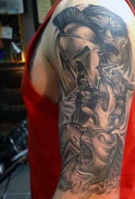 手臂古希腊神话主题战士黑色纹身图案