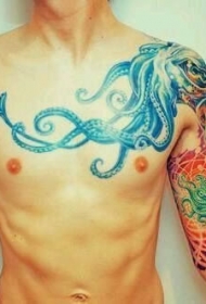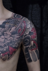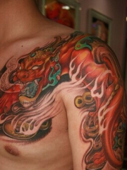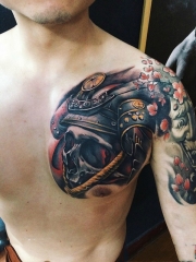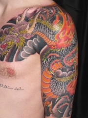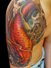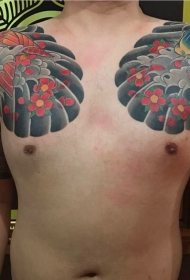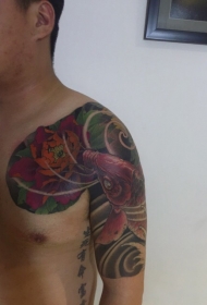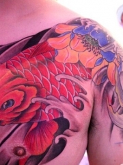 非常霸气的半甲经典彩色鲤鱼花卉纹身图案