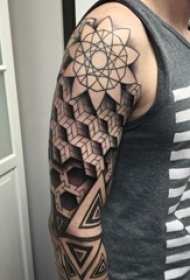 黑色几何线条纹身点刺技巧花臂半甲纹身男士霸气纹身图案