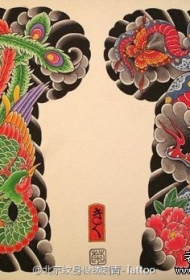 日式传统凤凰蛇花朵半甲纹身图案手稿
