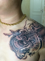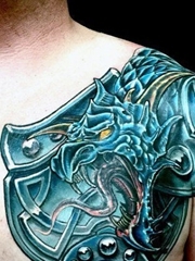 男生 霸气十足的半甲邪龙纹身图案