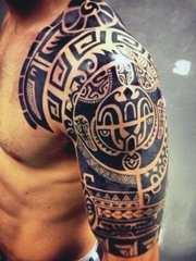 超期霸气的全黑半甲纹身图案