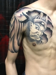 男性经典十足的传统半甲钟馗纹身图案