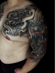男士超帅的半甲唐狮子纹身图案
