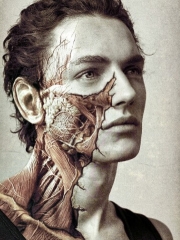 欧美帅哥头部颈部超个性树纹身图案
