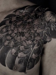 半甲黑色的优雅菊花个性纹身图案