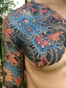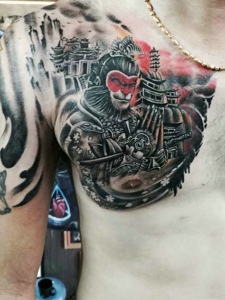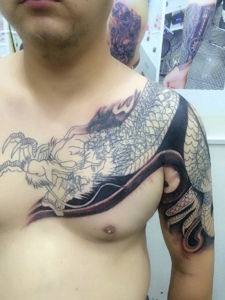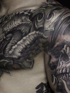 两款亮瞎双眼的胸前双半甲纹身刺青