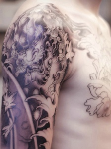 半甲貔貅个性纹身图案很嚣张