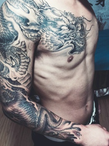 传统半甲邪龙纹身刺青充满魅力