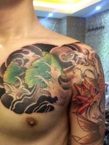 莲花与红鲤鱼结合的半甲纹身图案