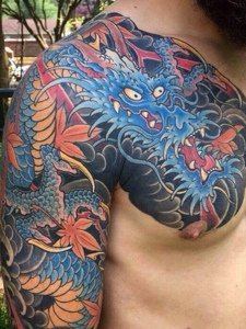 相当帅气的经典半甲邪龙纹身图案