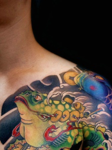鲤鱼与青蛙结合的彩色半甲纹身图案