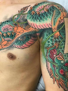 肩部的披肩龙半甲纹身图案
