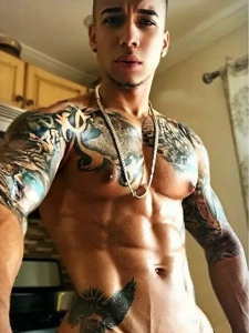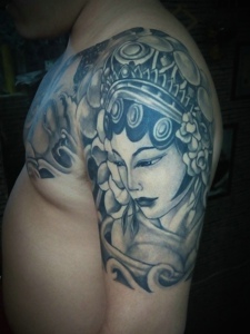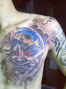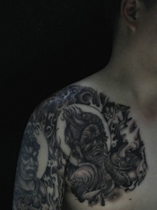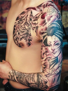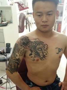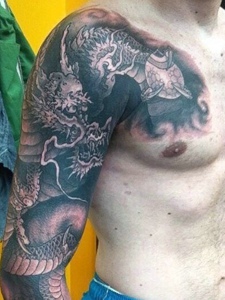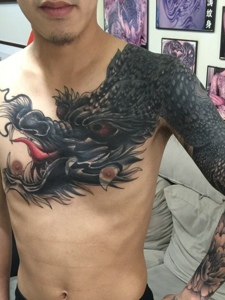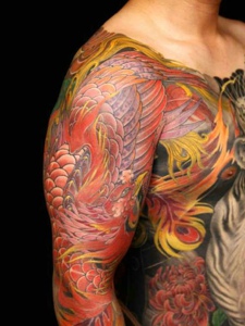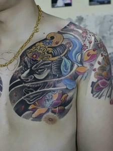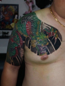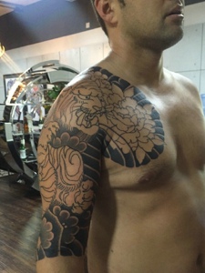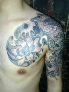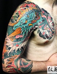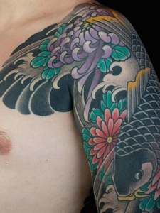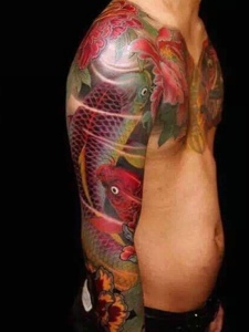 炫酷无比的彩色半甲鲤鱼纹身刺青