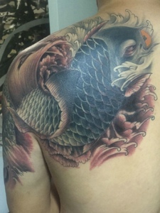 魅力十足的半甲大鲤鱼刺青