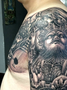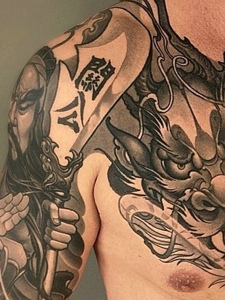 帅气无比的黑白半甲关公刺青