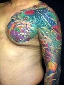 精致个性的彩色半甲鲤鱼纹身