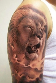 肩部棕色吼叫的狮子纹身图案