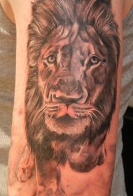 肩部棕色逼真的狮子头纹身图片