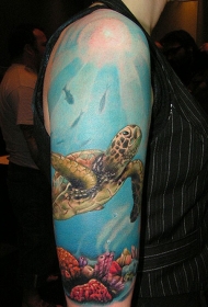肩部彩色深海海龟纹身图案