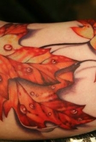 手臂彩色写实的枫叶纹身图案