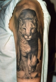 肩部棕色逼真行走的狮子纹身图案
