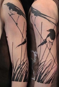 手臂酷黑鸟纹身图案