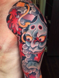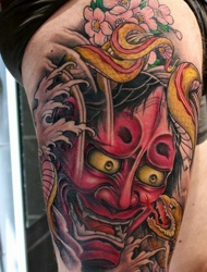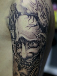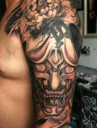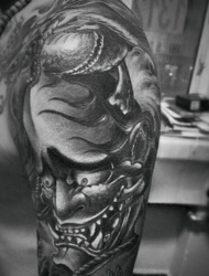日式传统般若纹身图片处在手臂上