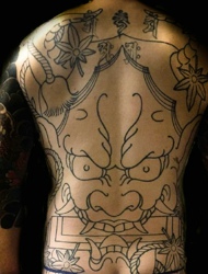 遮盖着整个后背的简答般若纹身