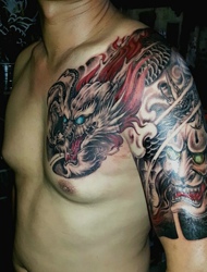 超级完美的半甲邪龙和般若纹身