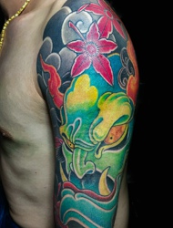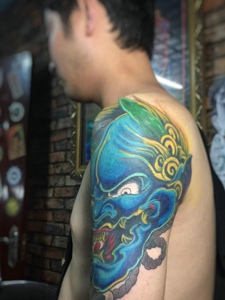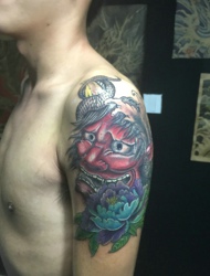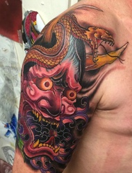 大臂彩色般若刺青雄霸天下
