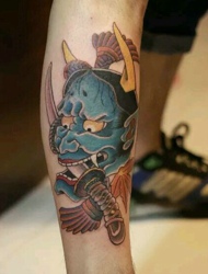 小腿的霸气匕首和般若纹身