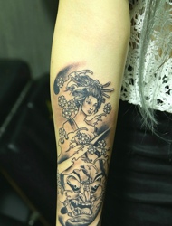 手臂一枚古代美女和小般若结合纹身